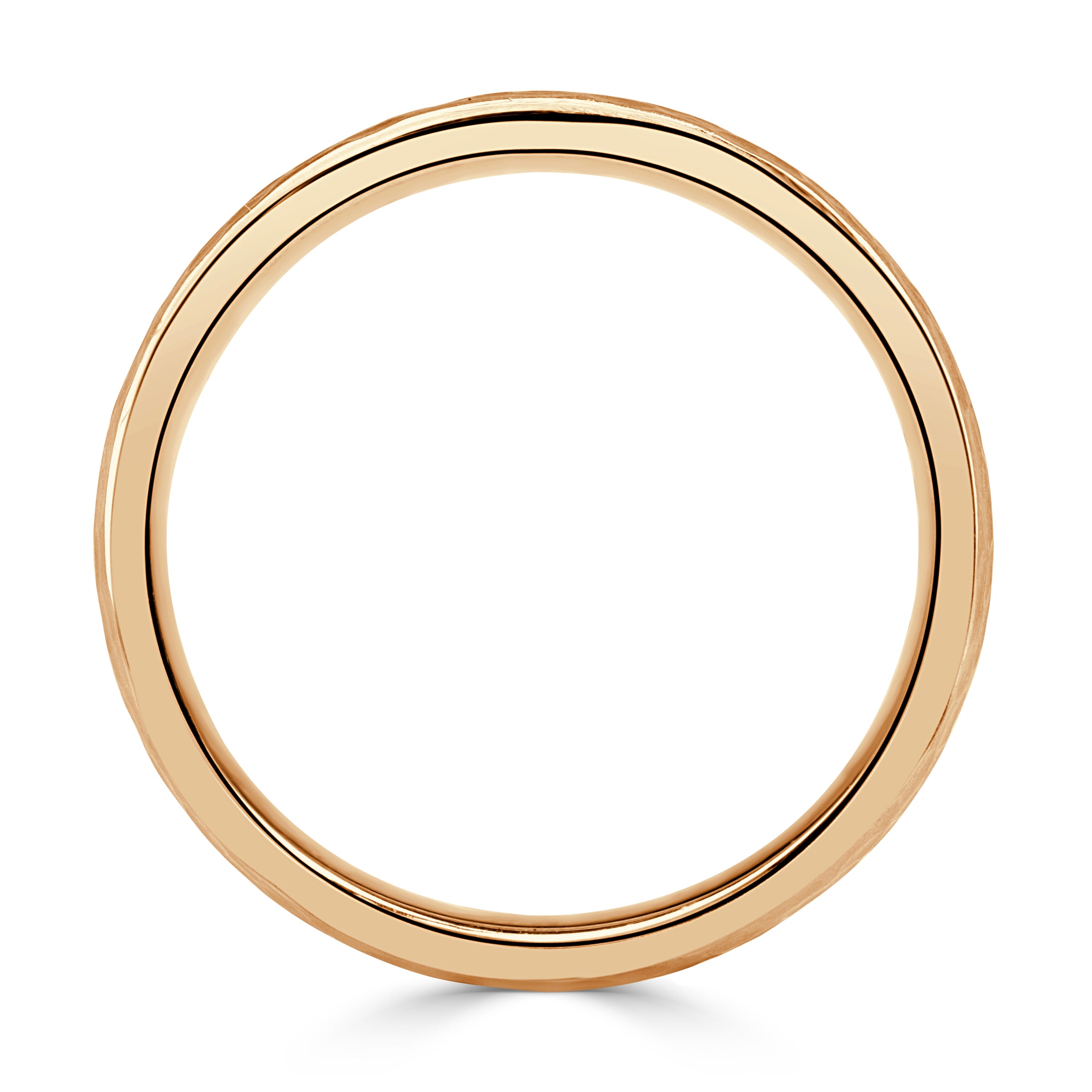 Defined by texture rather than ornament, the Hammered Finish Men's Wedding Band offers a modern interpretation of timeless form. The exterior surface is hand-hammered, creating a subtle, organic pattern that catches light with quiet variation. Each facet is intentionally irregular, lending the band depth, character, and a sense of individuality that feels both deliberate and enduring.