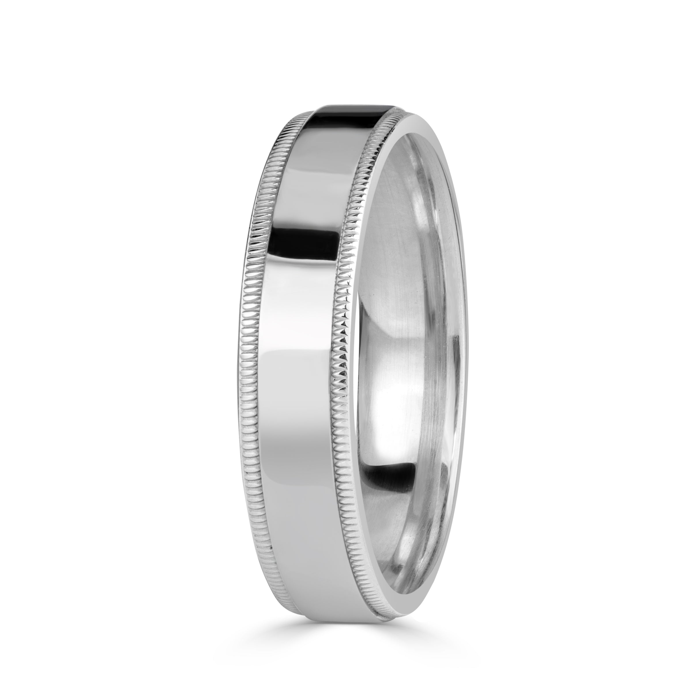 High Polish Milgrain Step Edge Flat Men's Wedding Band 5.5mm