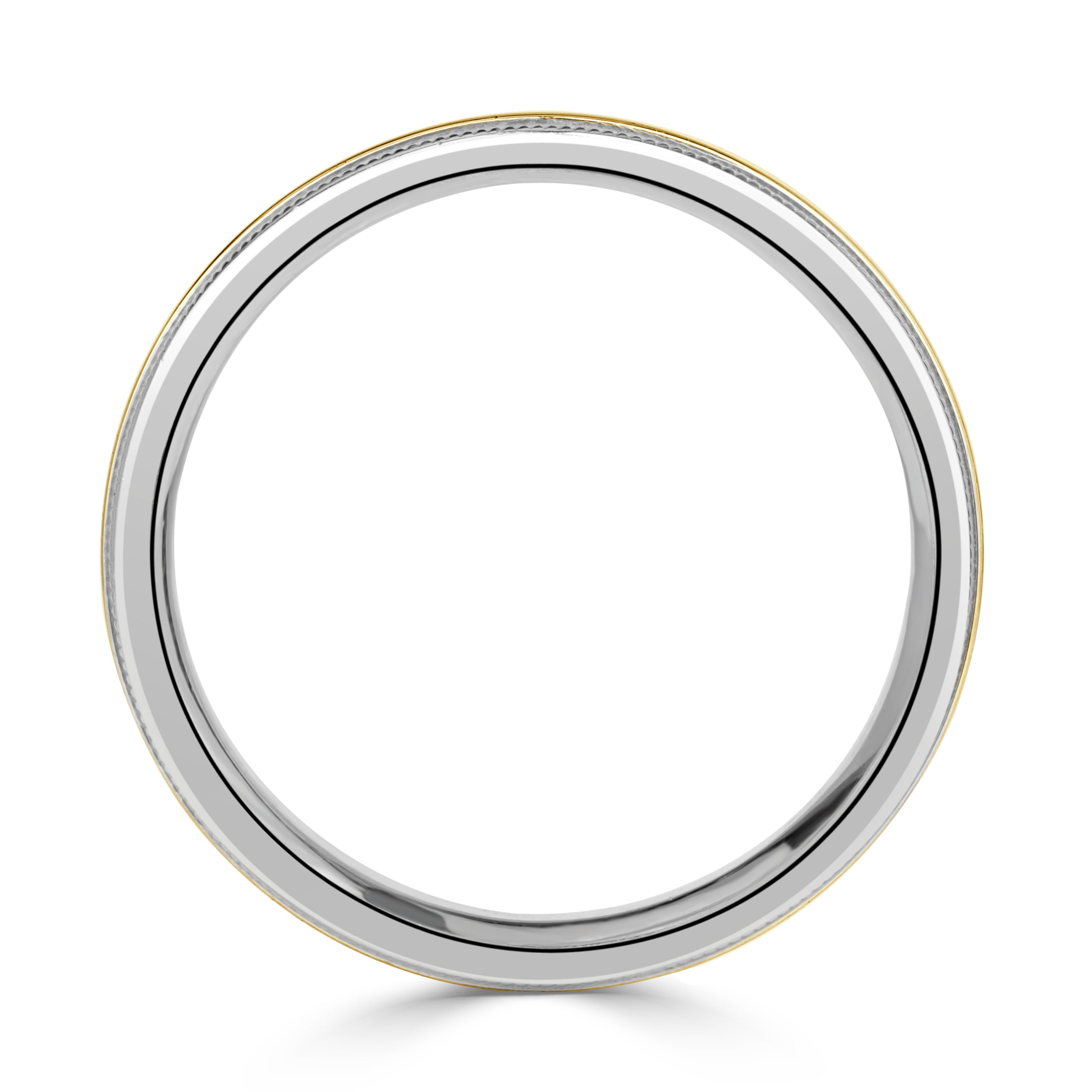 Crafted for the discerning groom, the High Polish Milgrain Step Edge Flat Men's Wedding Band fuses modern minimalism with artisanal detail. The high-polish flat surface evokes a mirror finish, framed on both edges by delicate milgrain steps—a bead-textured border that lends subtle vintage character without overpowering the band.