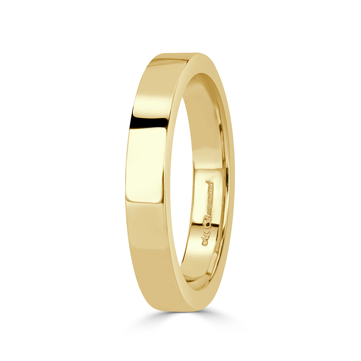 Handmade Flat Wedding Band in 18k Champagne Yellow Gold