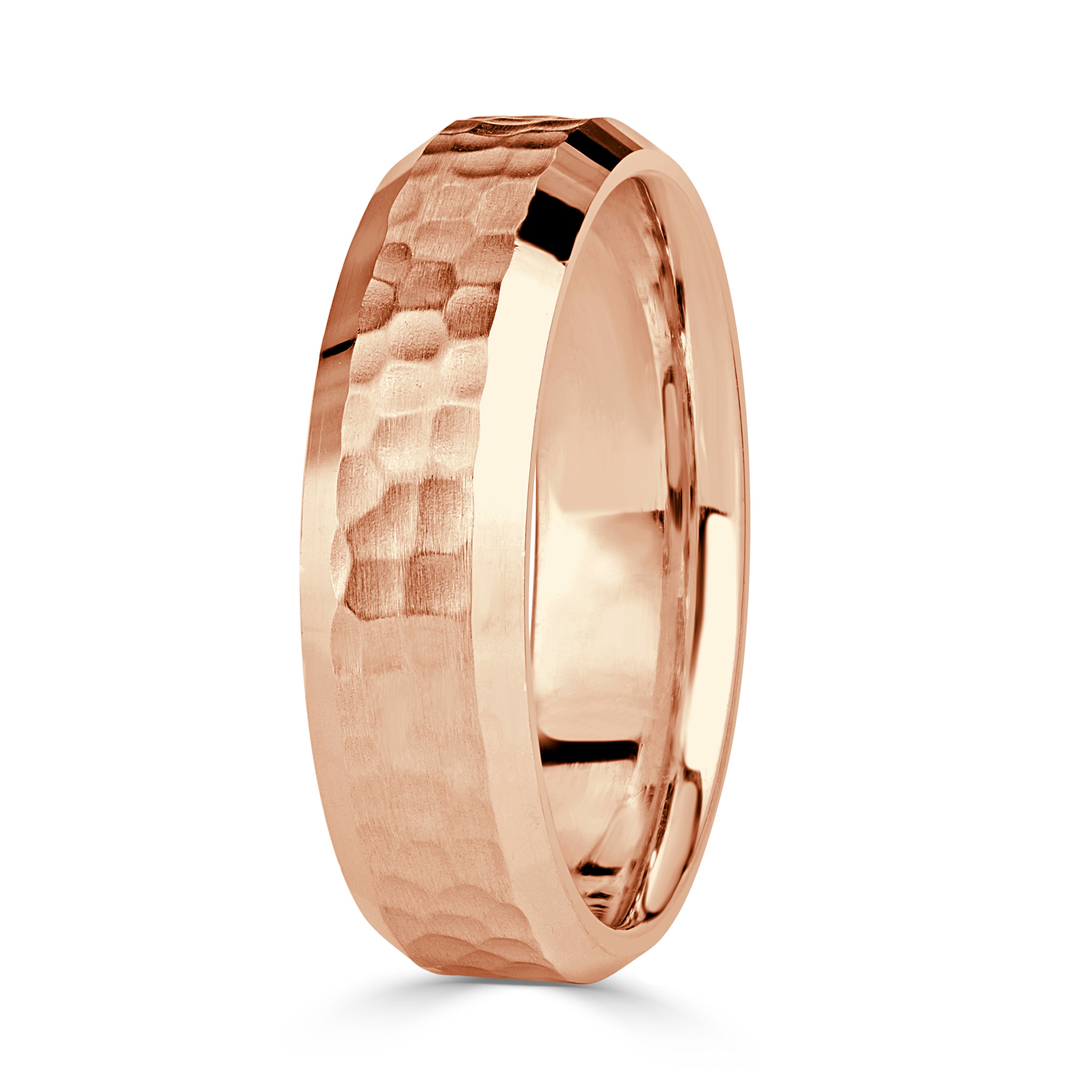 Hammered Beveled Edge Men's Wedding Band 6mm