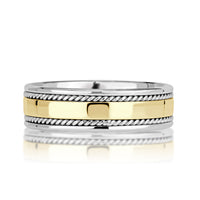 The High Polish Rope Edge Men's Wedding Band is a masterful expression of craftsmanship and classic design, perfect for grooms seeking a ring that combines elegance with symbolic meaning. Featuring a striking rope detail intricately handcrafted around the band’s edges, this wedding ring embodies unity, strength, and eternity — timeless qualities that resonate deeply in wedding symbolism.