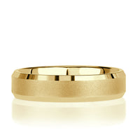 Refined yet striking, the Sandblast Center Polished Bevel Edge Men's Wedding Band captures the essence of modern elegance with an architectural interplay of texture and form.
