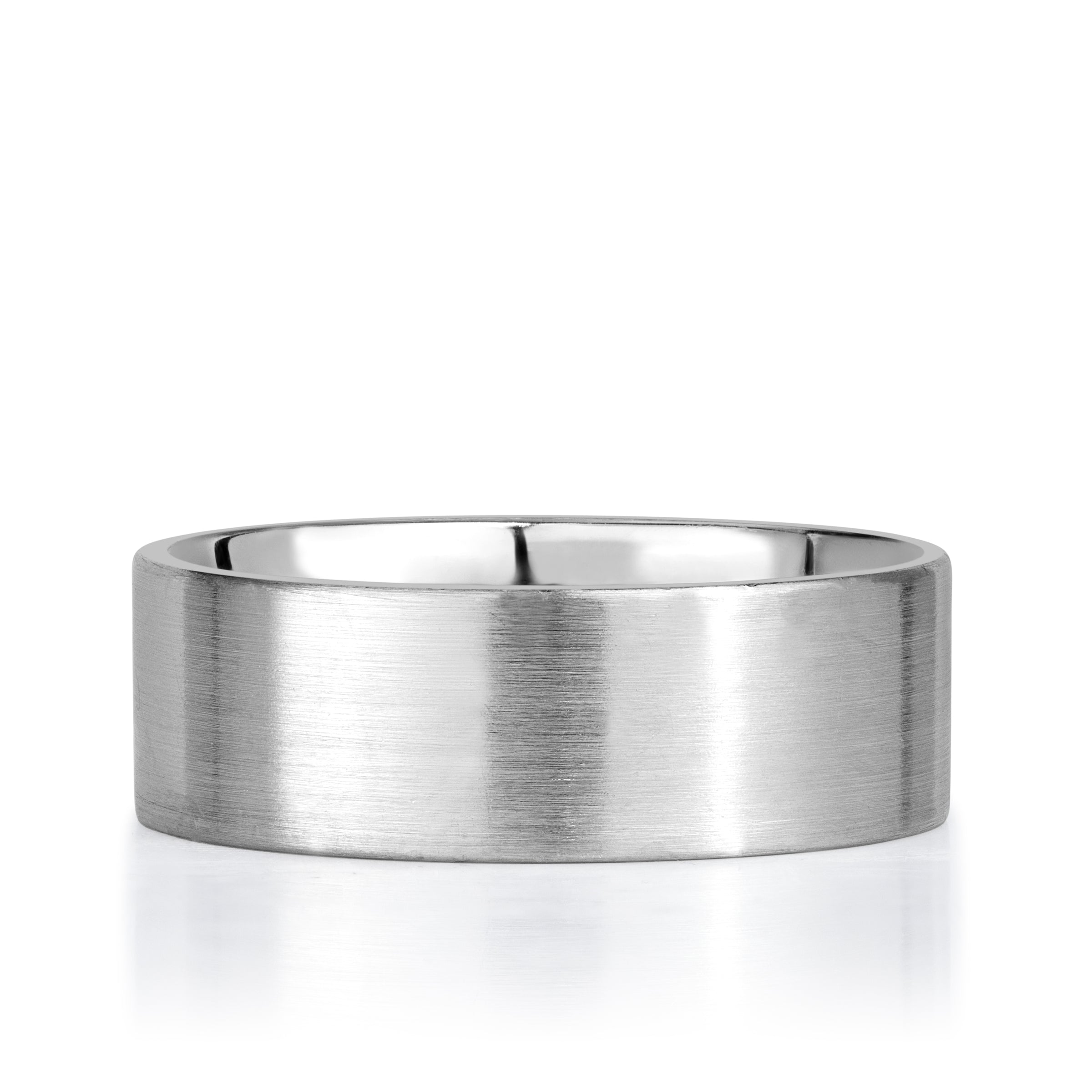 Bold in proportion, understated in elegance, this Satin Flat Top Men's Wedding Band  speaks with quiet confidence. Its flat-top silhouette offers a modern geometry, while the satin finish imparts a soft, brushed texture that resists glare and emphasizes substance over shine.