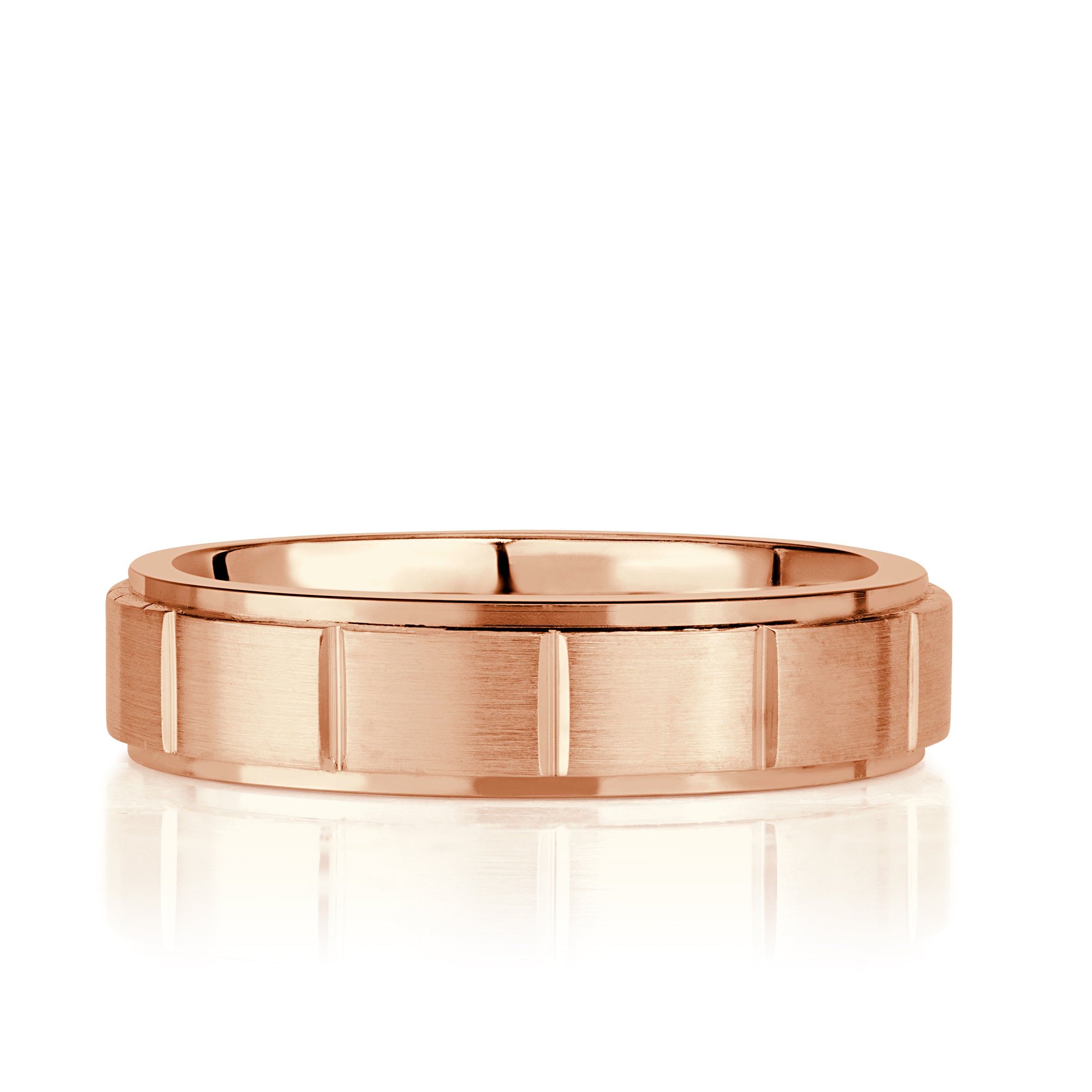 Crafted in 14K or 18K yellow, white, or rose gold, as well as Platinum, this band is distinguished by its balance of geometry and simplicity. The 6mm width offers noticeable presence without heaviness, while the comfort-fit interior ensures smooth, effortless wear that conforms naturally to the hand.