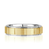 Crafted in 14K or 18K yellow, white, or rose gold, as well as Platinum, this band is distinguished by its balance of geometry and simplicity. The 6mm width offers noticeable presence without heaviness, while the comfort-fit interior ensures smooth, effortless wear that conforms naturally to the hand.