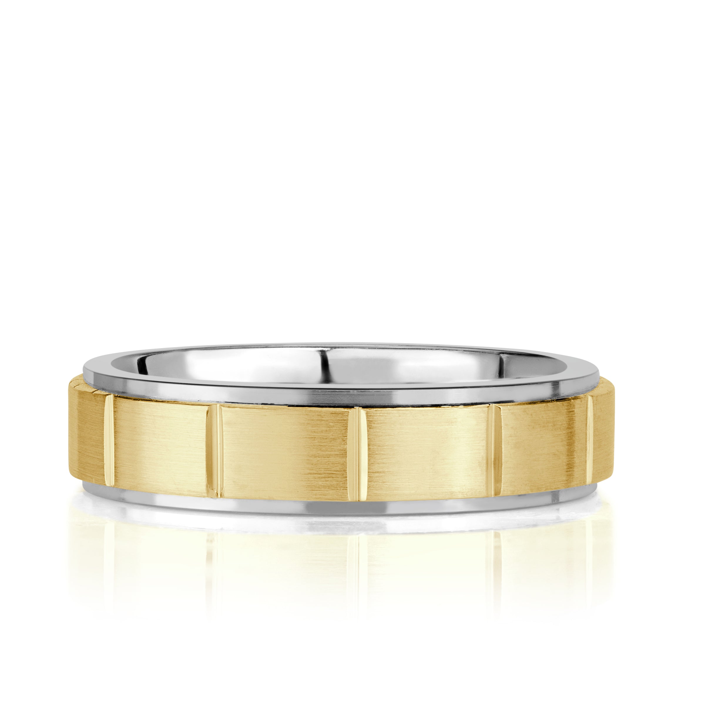 Satin Fluted Step Edge Men's Wedding Band 6mm