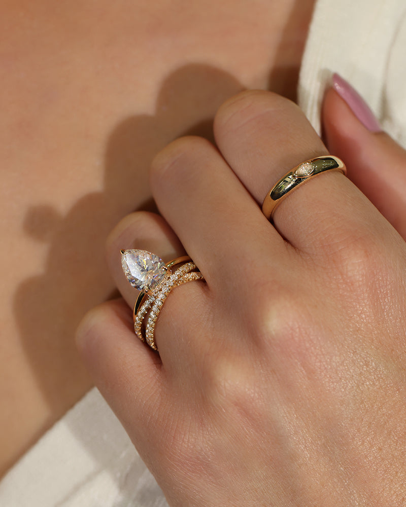 A flush fit depends on the profile height and basket design of your engagement ring setting. Low-set baskets, hidden halos that stay within the shank width, and straight shanks without large under-galleries help your wedding band sit snugly with no gap. If you’re dreaming of stacked wedding bands or anniversary bands later, tell us upfront—we’ll build the engagement ring to accommodate multiple rings. Many Mark Broumand designs feature that ultra-slim 1.65mm shank, which makes stacking easy and comfortable.