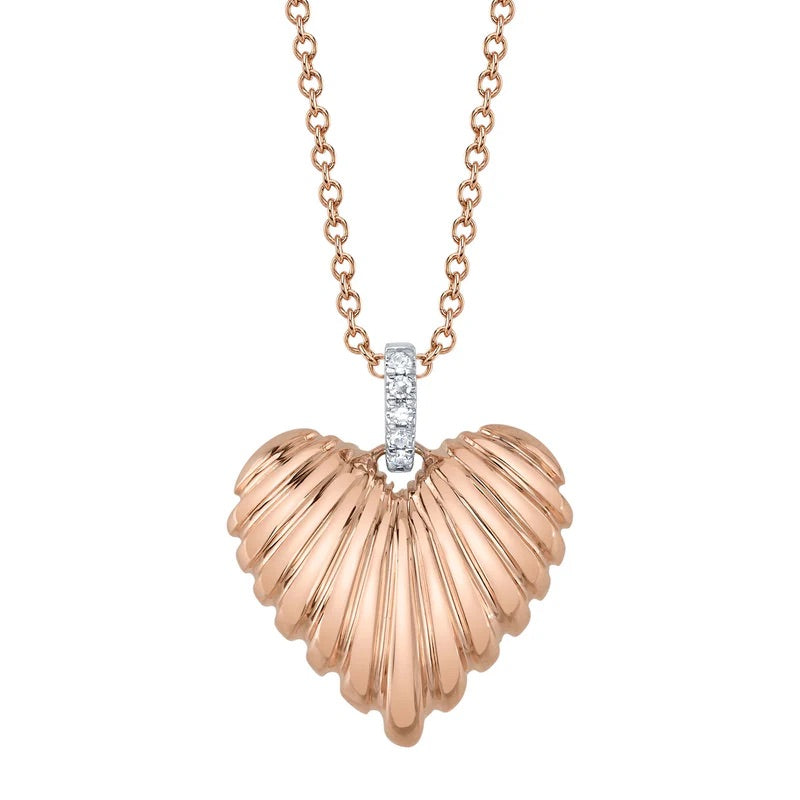 0.02ct Round Brilliant Cut Diamond Convex Fluted Heart Necklace