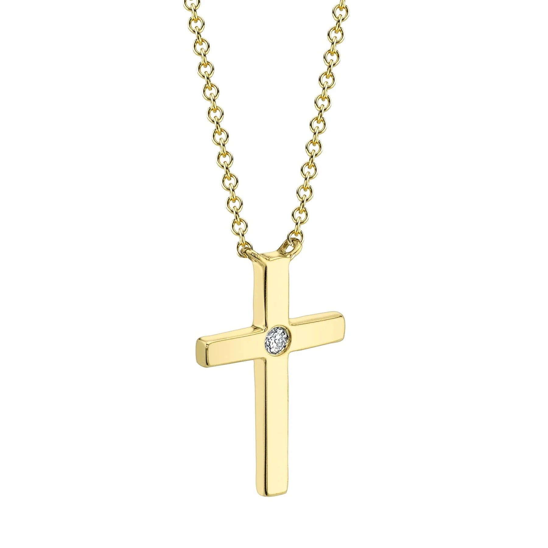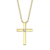 Bring a hint of sparkle to your everyday look with the 0.03-carat Round Brilliant Cut Diamond Cross Necklace, a petite design crafted with refined simplicity. Made in 14K yellow, white, or rose gold, this necklace features natural round brilliant diamonds, graded F-G in color and VS2-SI1 in clarity, set to shimmer softly with light.