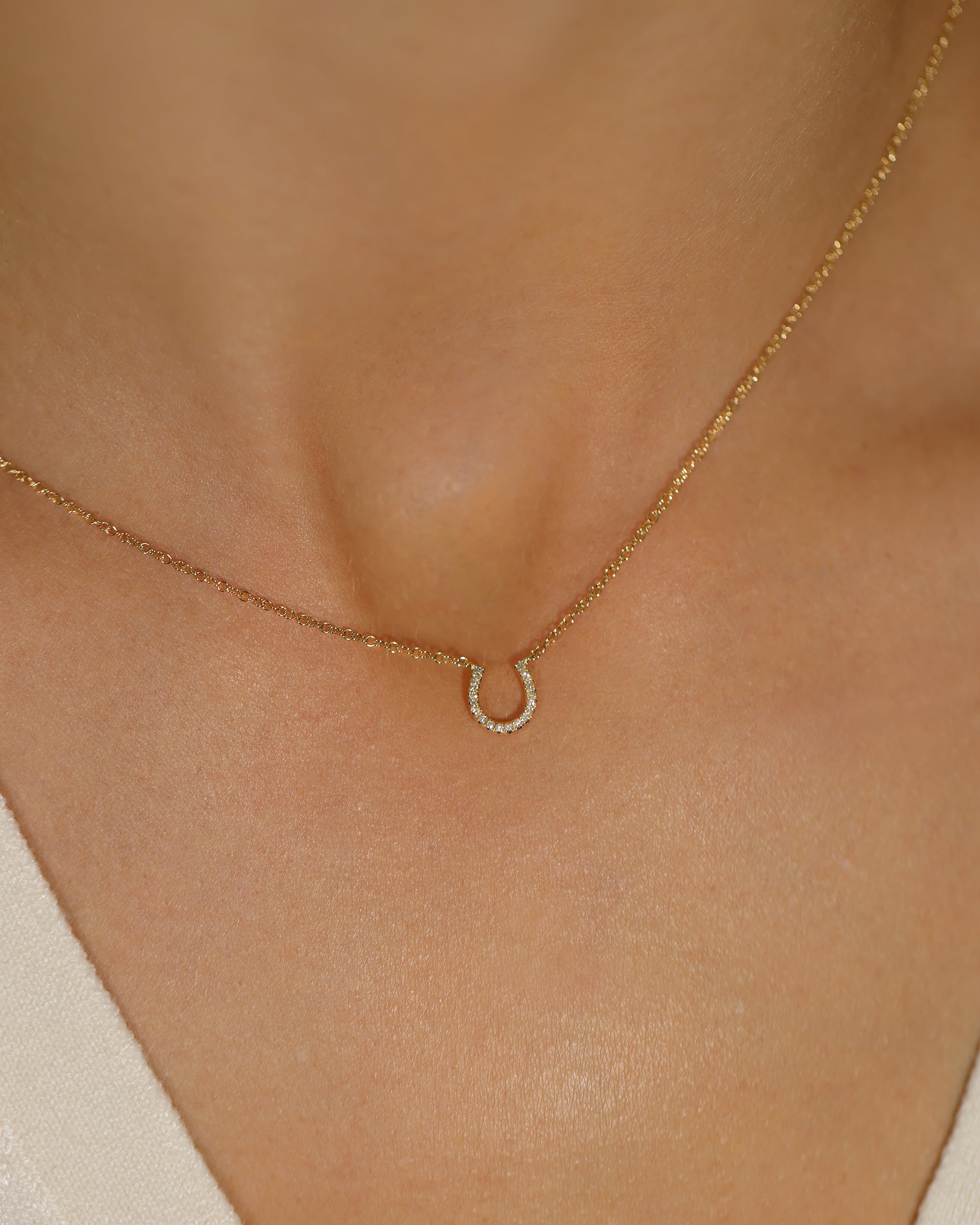 Minimalist yet meaningful, this pendant brings artisanal attention to detail into everyday wear. The slim, open horseshoe silhouette creates a light and graceful presence on the neckline, making it an ideal choice for daily elegance or as a thoughtful gift.