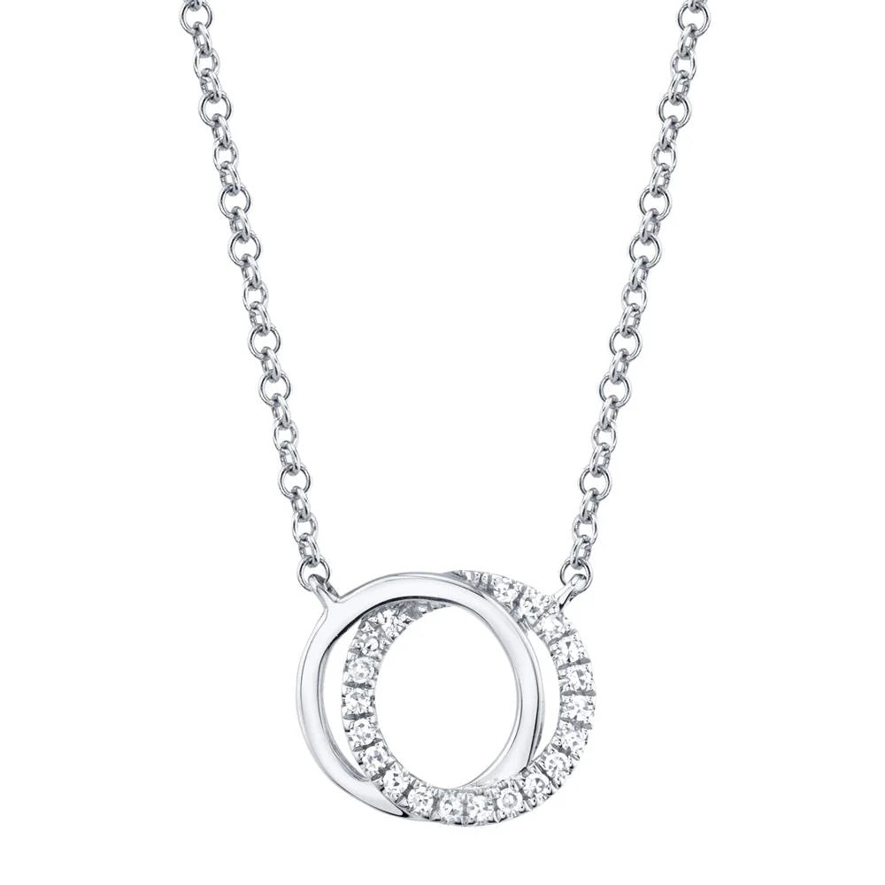 This beautiful diamond necklace is dainty and subtle with just the right amount of sparkle. This piece features 0.07ct of round cut diamonds styled in an interlocking circle design.