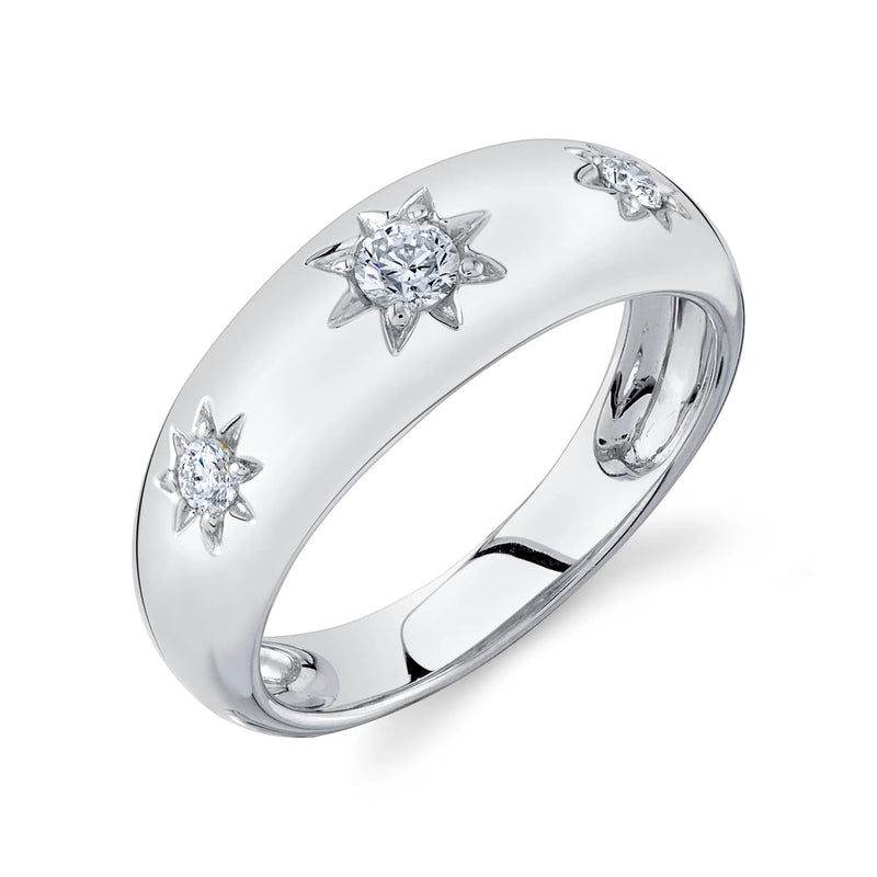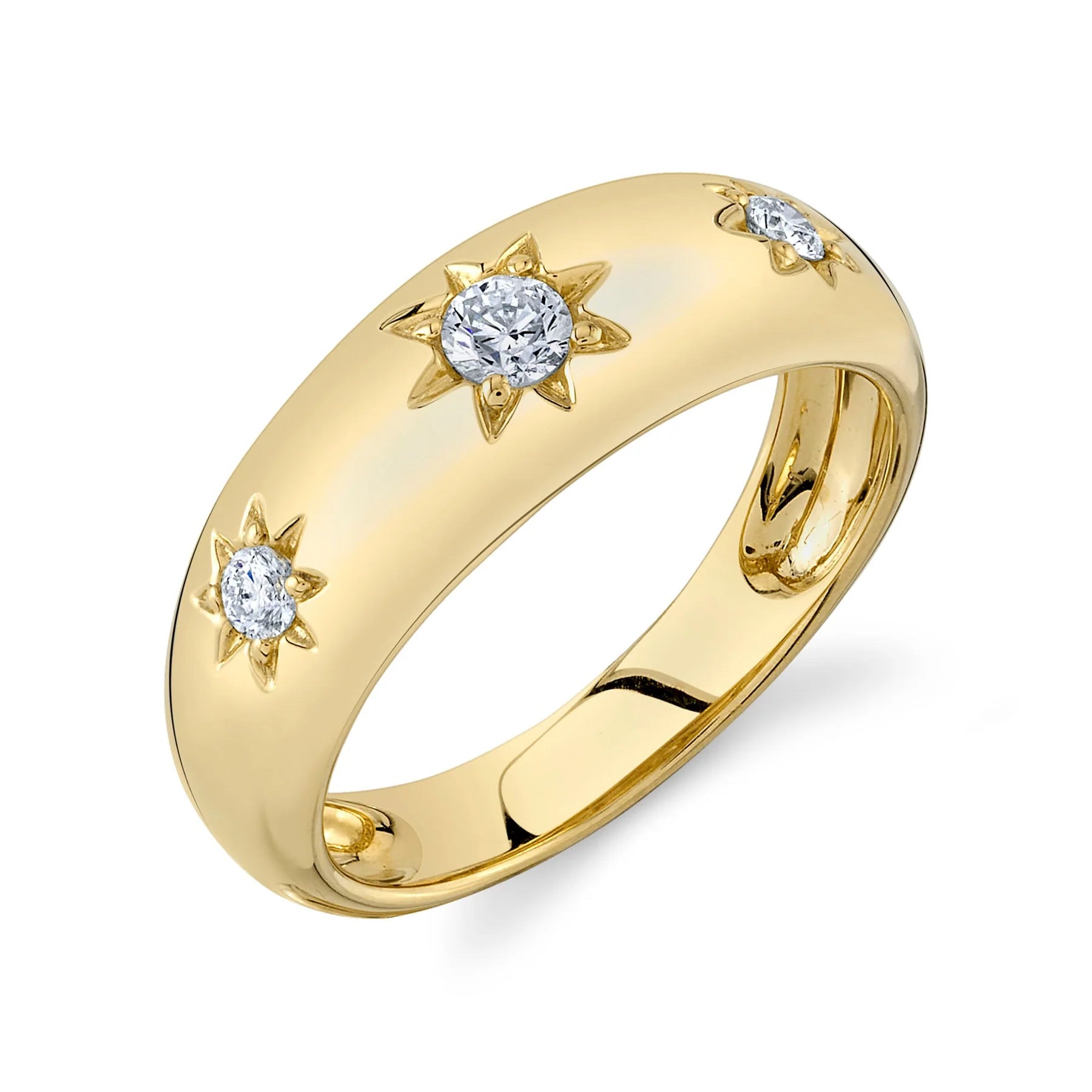 The 0.09ct Round Brilliant Cut Diamond Star Band in 14k gold adds a touch of playful elegance to your jewelry collection. Featuring 0.09 carats of pavé-set round brilliant diamonds, each nestled within delicate star-shaped designs, this band sparkles with charm. The warm glow of 14k gold enhances the brilliance of the diamonds, making it perfect for stacking with other rings. Whether worn alone for a whimsical, minimalist look or stacked for added impact, this versatile piece brings both sophistication and a sense of fun to any style.