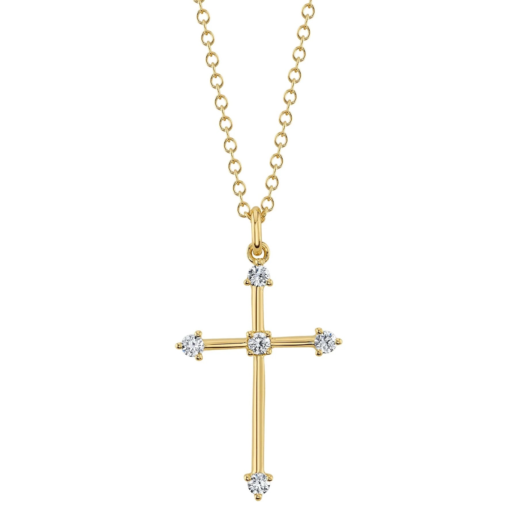 Available in yellow, white, or rose gold, this diamond cross necklace offers clean lines and balanced proportions. The secure setting maximizes light reflection while keeping the profile low and refined. The result is a versatile piece suited for everyday wear, gifting, or adding a subtle touch of luxury to formal attire.