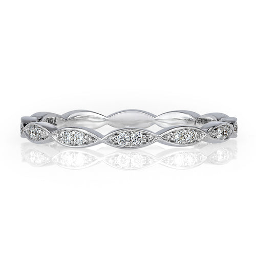 Refined colorless diamonds are meticulously handset into this luxurious interconnected marquise band design. With the combination of the reknown sparkle of round brilliant cuts and lovely shape of the marquise cuts, this platinum band has it all! This beauty sparkles perfectly worn by itself or stacked amongst other rings.