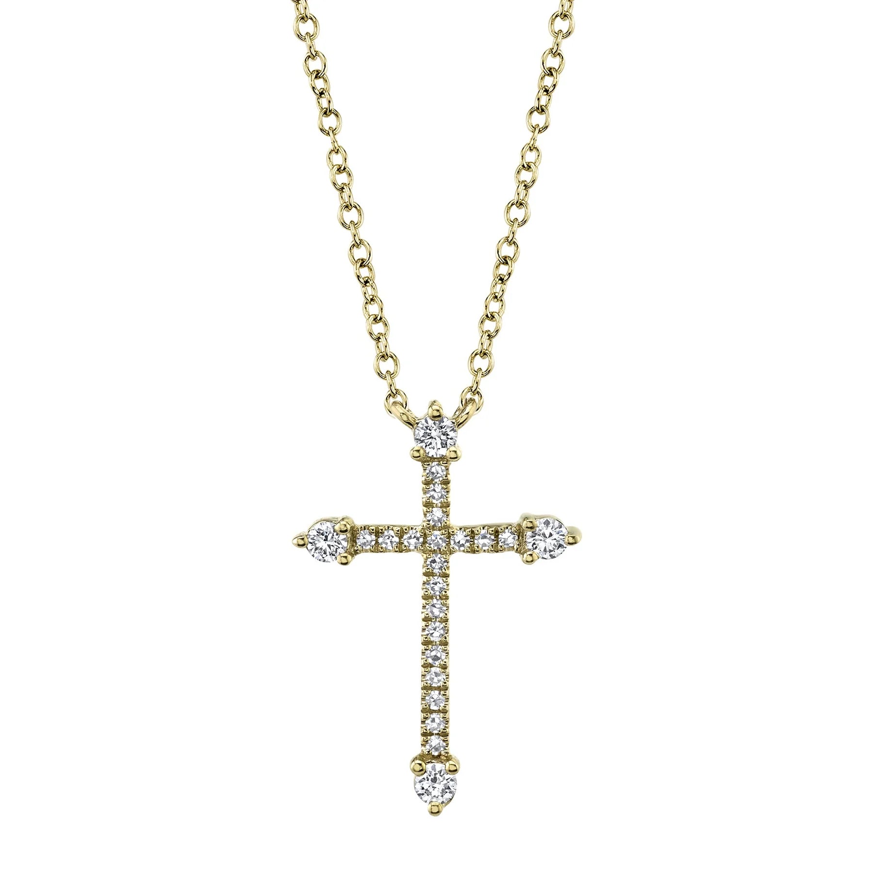 Our 0.17ct Round Cut Diamond Cross Necklace in 14k gold showcases exquisite diamonds, ensuring your necklace shimmers with brilliance and sparkle. Meticulously crafted, this cross necklace is a symbol of both faith and sophistication, gracing your neckline with unmatched elegance.