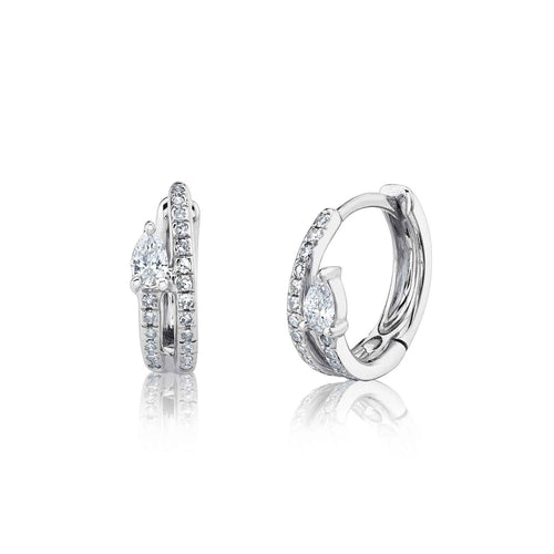 0.19ct Pear Shaped and Round Cut Diamond Huggie Earrings
