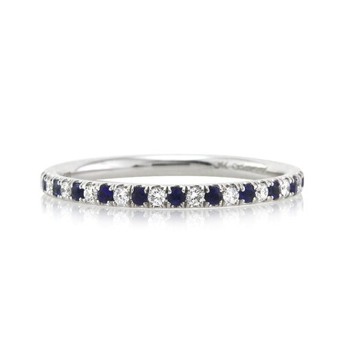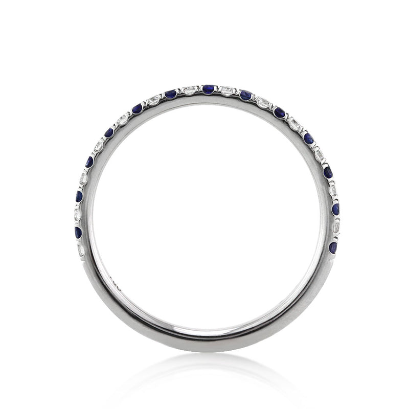 Have a love for diamonds and sapphires? This is the perfect band for you. It features 0.20ct of diamonds and sapphires micro pavé set just past halfway on 18k white gold.