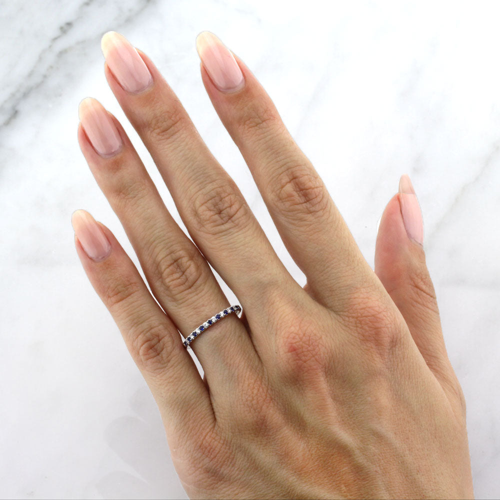 0.20ct Sapphire and Diamond Wedding Band in 18k White Gold
