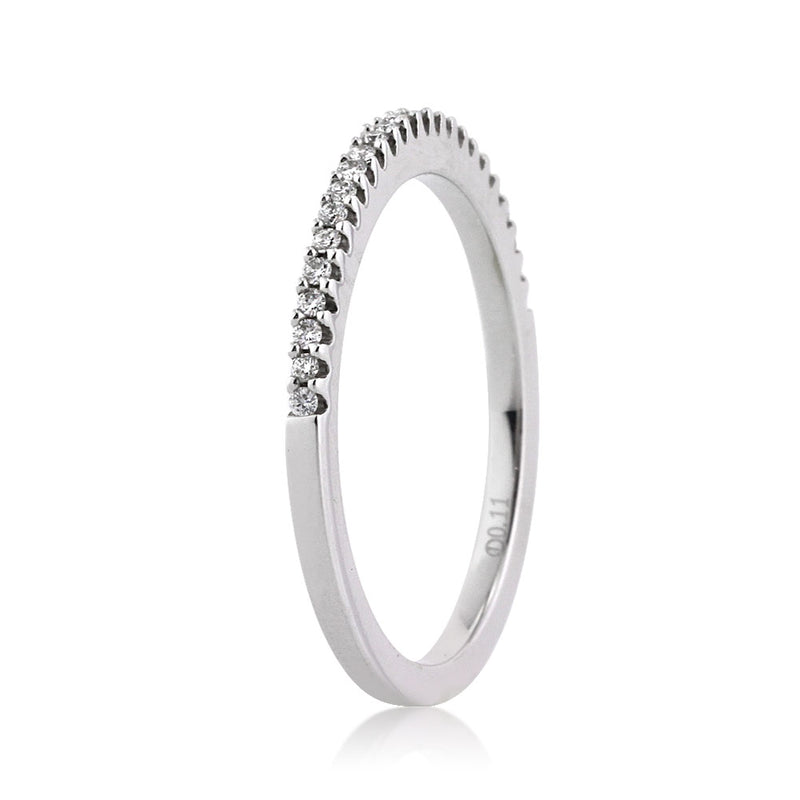 From every angle, this round brilliant diamond wedding band looks amazing! The 18k white gold shared-prong setting features 0.30ct in round brilliant cut diamonds. The brilliant diamonds are set almost to halfway around on the lovely wedding band.