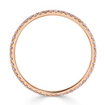 This rare and gorgeous fancy pink round diamond eternity band is one of a kind. The 18k rose gold mico pavé setting is dainty and compliments the 0.35 carats of pink diamonds perfectly. It's a rare beauty!