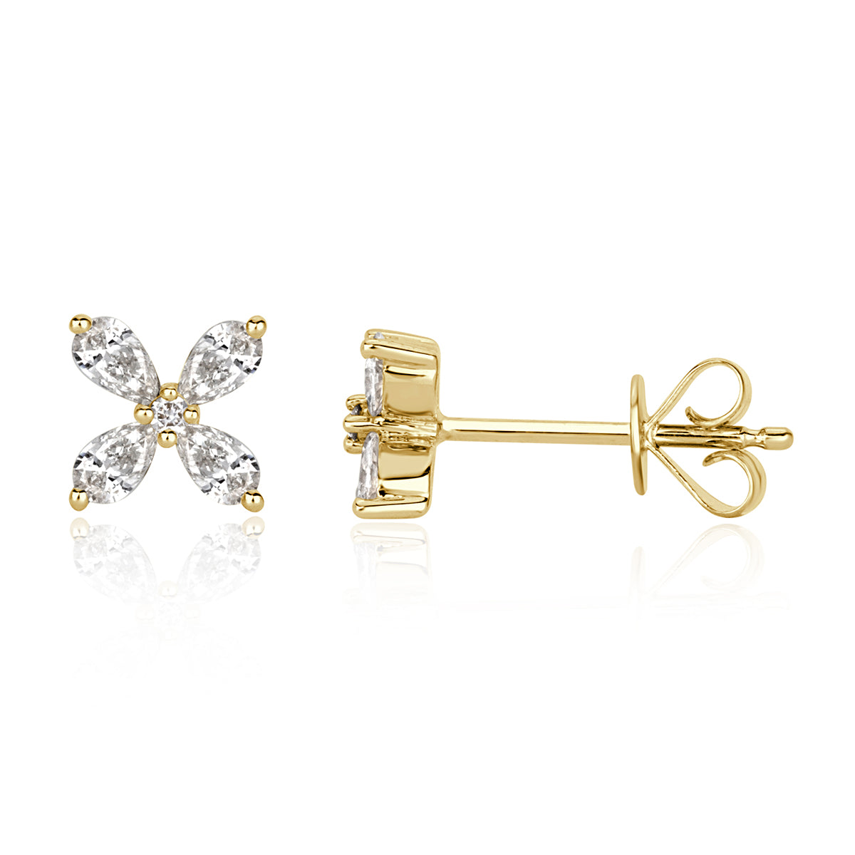 0.36ct Round Brilliant Cut and Pear Shaped Diamond Floral Stud Earrings in 18k Yellow Gold
