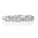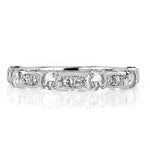 This lovely wedding band with old cut stones is the perfect pair for your vintage style engagement ring. It is set on 18k white gold with 0.60 carats of rose and single cut diamonds and finished with milgrain detail.