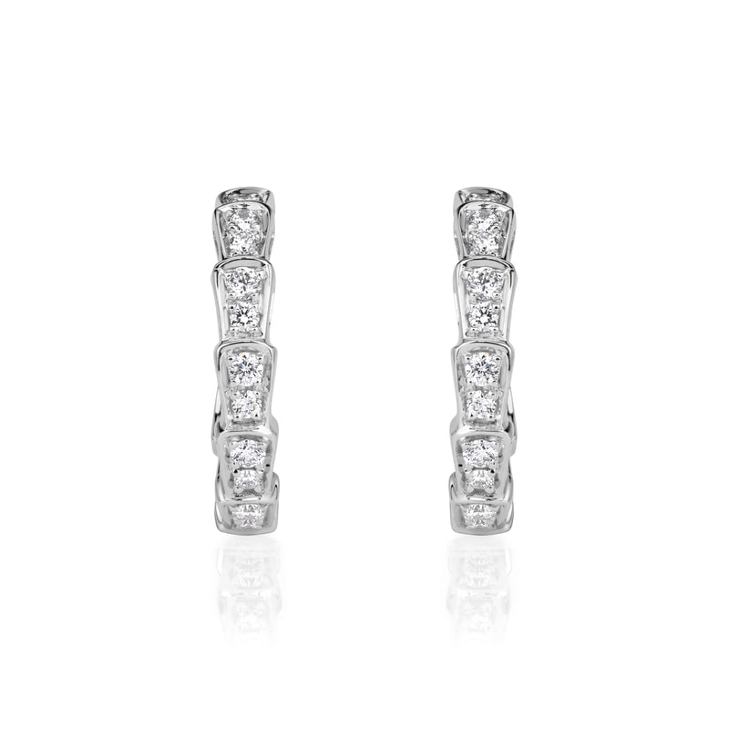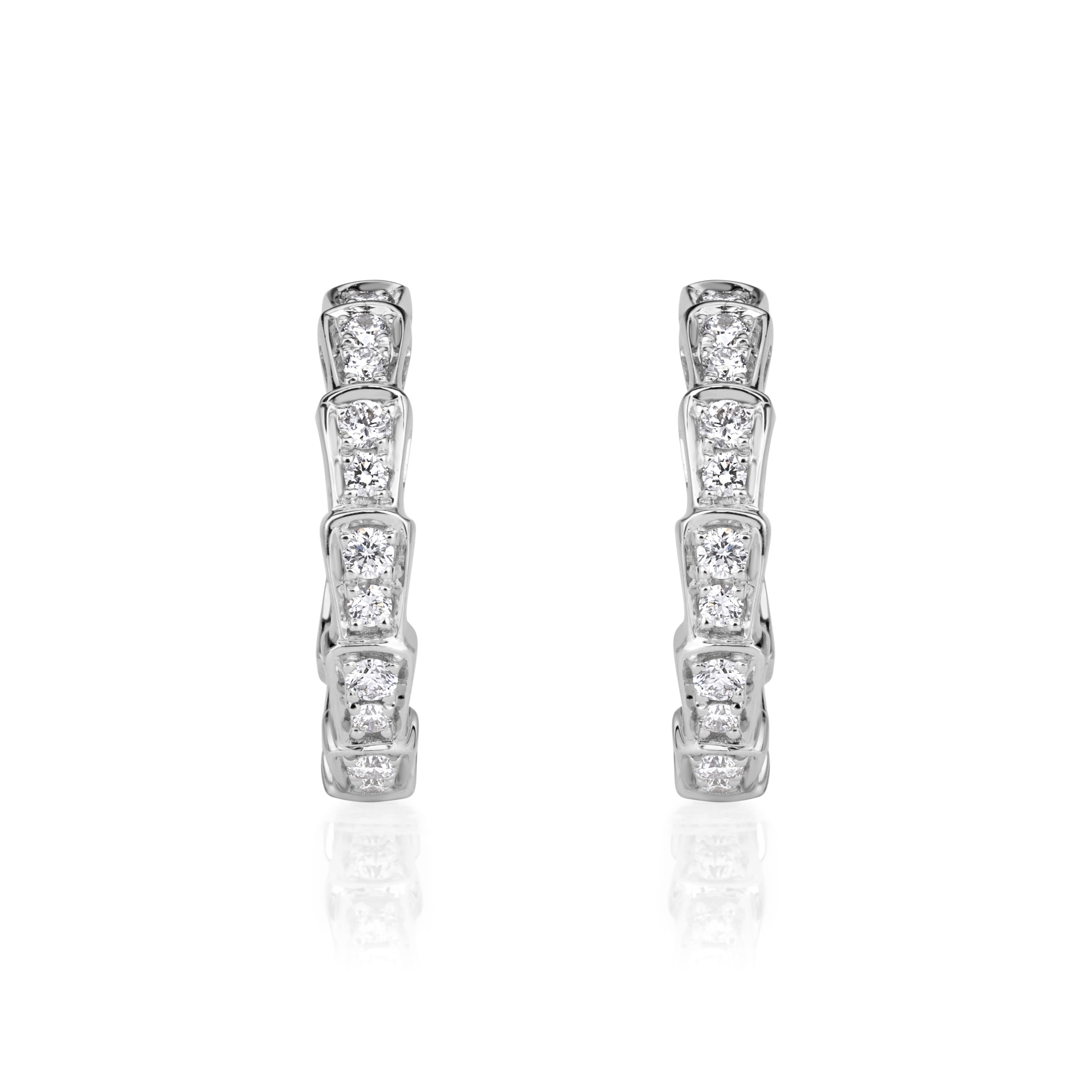 Exude modern elegance with these 0.62carat Diamond Hoop Earrings, designed with sculpted segments, each adorned with Round Brilliant diamonds for captivating allure. The 0.5-inch diameter offers the perfect balance between subtle sophistication and eye-catching brilliance, making them ideal for both everyday luxury and special occasions. The secure post and butterfly back closure ensures comfortable wear, while the contemporary geometric design adds a bold, modern edge to a timeless silhouette.