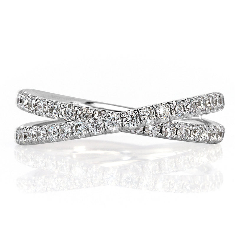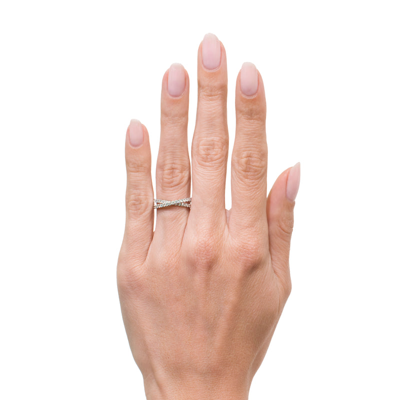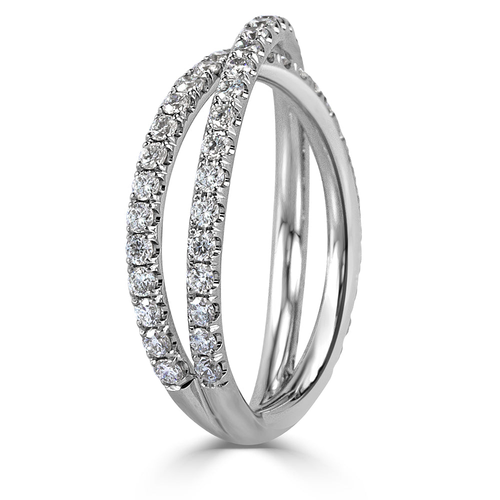 0.85ct Round Brilliant Cut Diamond Crisscross Ring in 18k White Gold
