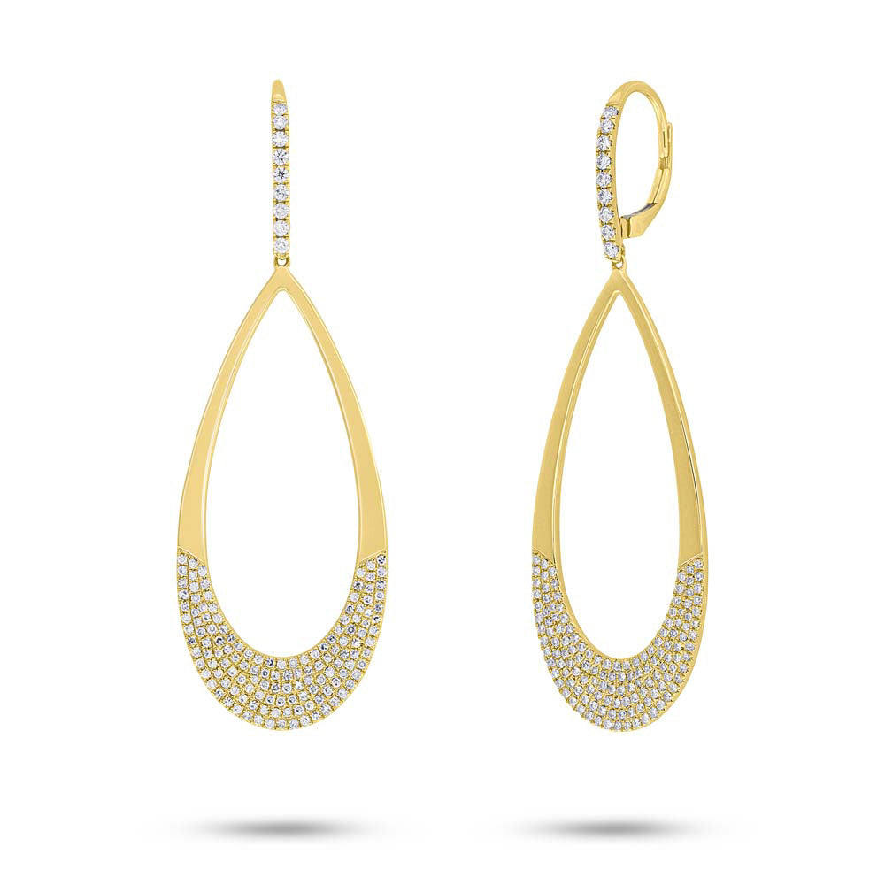 0.88ct Round Cut Diamond Pear Hoop Earrings in 14k Yellow Gold