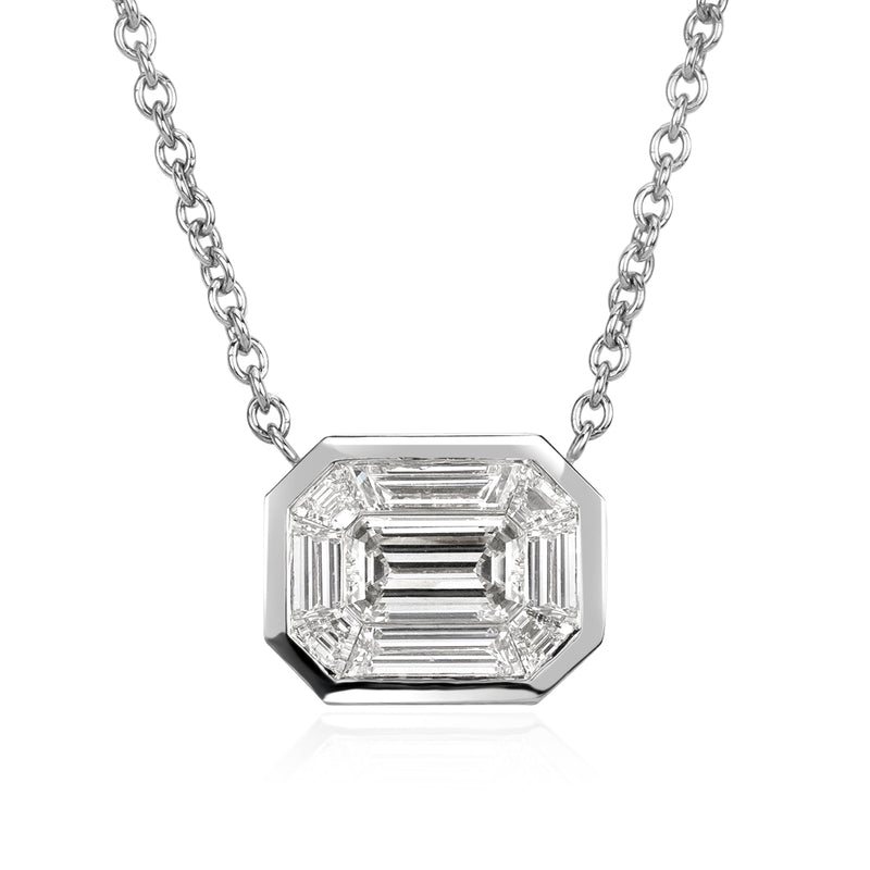 0.90ct Emerald and Trapezoid Cut Mosaic Diamond Pendant