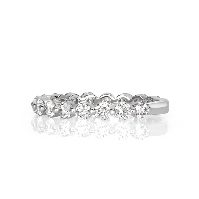 This dazzling round brilliant cut diamond band is pure perfection! It features 0.95ct of diamonds that are perfectly matched at E-F color, VS1-VS2 clarity. Set in a dainty single prong setting in 18k white gold, this band is sure to be a wonderful addition to your finger!