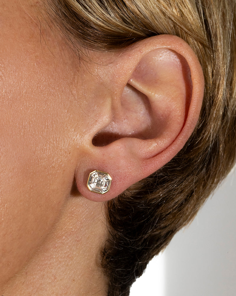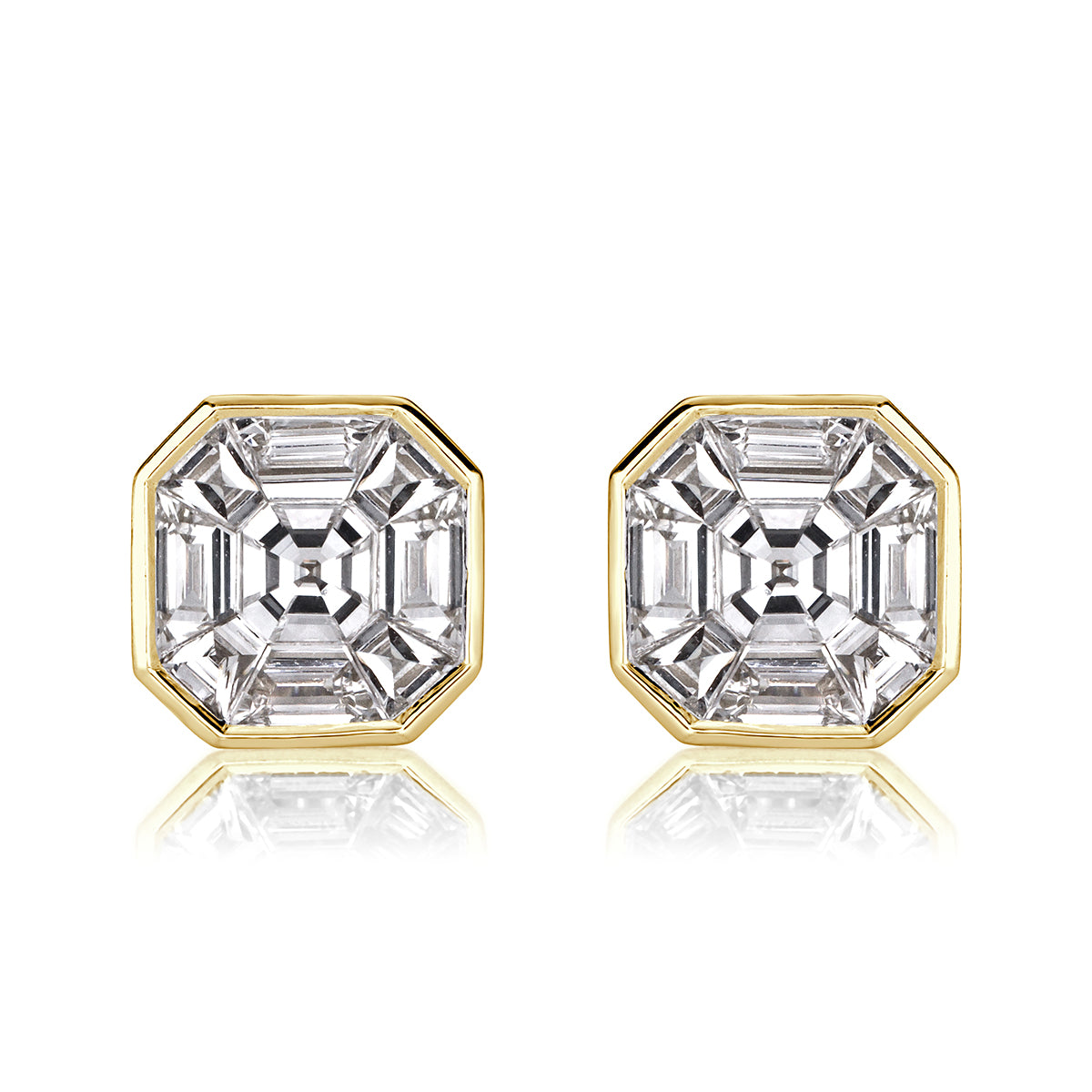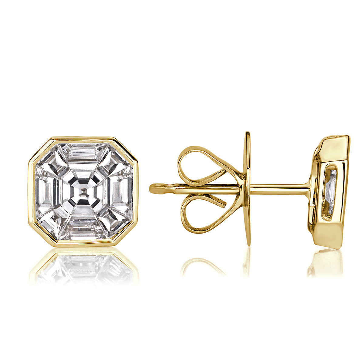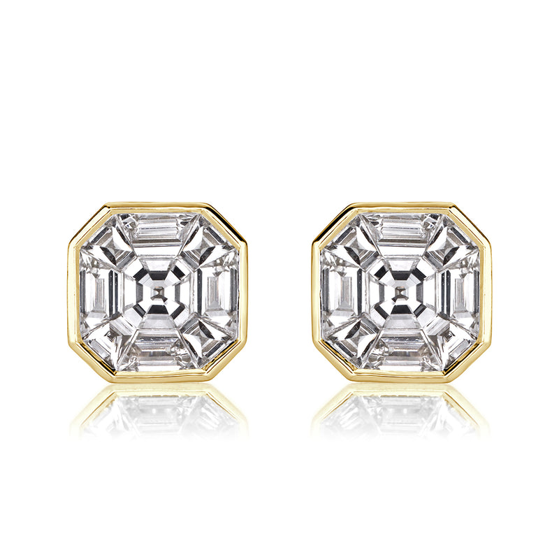 1.00ct Asscher Cut Mosaic Diamond Stud Earrings in 18K Yellow Gold