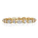 Our new twist on the diamond eternity band. This knockout ring looks stunning by itself or worn in stack. Alternating bright white marquise and round brilliant cut diamonds shine brightly in the fresh design. Beautifully crafted in 18k champagne yellow gold, this ring boasts 1.00ct of quality diamonds set perfectly in single prong setting. It is dainty, whimsical and absolutely beautiful.
