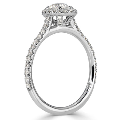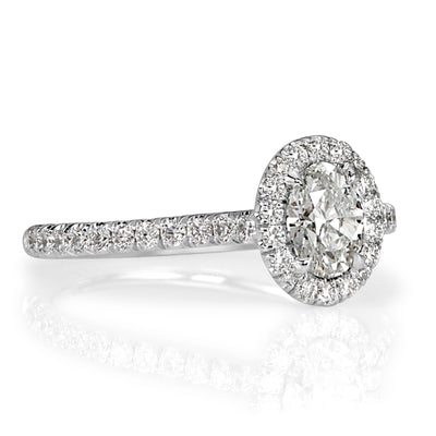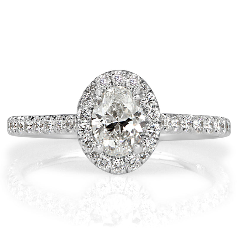 Express your forever love with this lovely oval cut diamond engagement ring. The handcrafted 18k white gold setting showcases a beautiful 0.50ct oval cut center diamond that is GIA certified at G-VS2. It is perfectly eye-clean and gives off immense scintillation. The centerpiece is surrounded by a sparkling halo of round brilliant cut diamonds for additional shimmer. The connectors and dainty shank is also adorned with handset micro pave diamonds going down the shank just past halfway. It sits picture perfect on the finger and is the ultimate symbol of your eternal love!