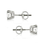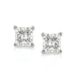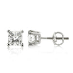 This beautiful pair of princess cut diamond studs has a total weight of one carat. The bright, white center stones are set on 14k white gold mountings with screw backs.