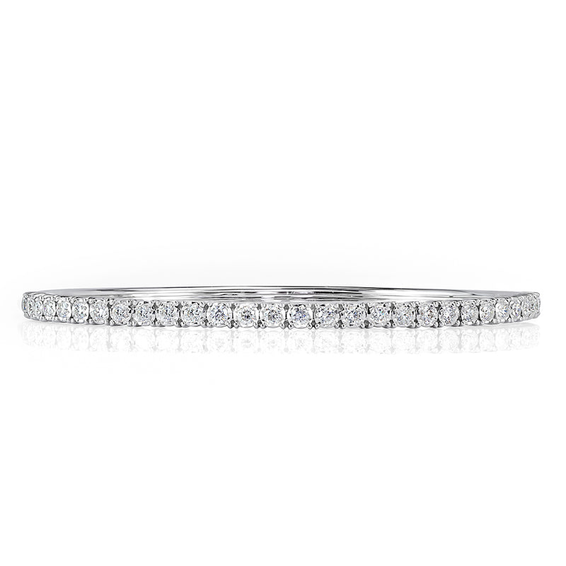 This diamond bangle bracelet is stunning! Featuring diamonds set half the way around for ultimate sparkle. The sleek 14k white gold design features 1.00ct of micro-pavé set round brilliant cut diamonds. It is subtle and striking.