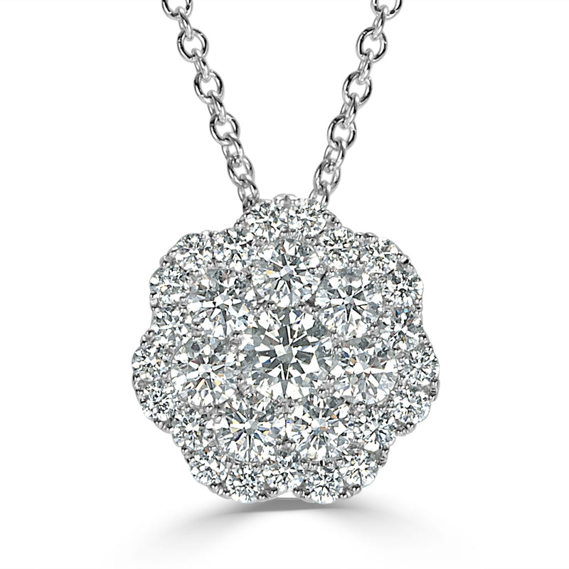 1.01ct Flower Cluster Diamond Pendant in 14k White Gold