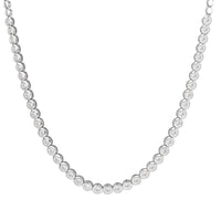 The 1.03-carat Round Brilliant Cut Diamond Bezel Set Tennis Necklace brings a modern edge to a jewelry classic. Handcrafted in your choice of 14K yellow or white gold, this design features natural round brilliant diamonds, each graded G-H in color and VS2-SI1 in clarity, fully framed in polished bezels that highlight their sparkle and give the piece a smooth, contemporary finish.