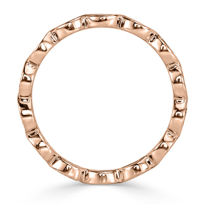 This dainty diamond eternity band features 1.05t dazzling marquise cut diamonds and will be an adorable addition to your collection. Its exclusive marquise cut E-F and VS1-VS2 quality diamonds are hand-matched in their ultimate color and clarity for this band to be pure perfection. The stones are bezel-set in a stunning 18K Rose Gold mounting which is amazingly stylish for mixing and matching your bands. Add more sparkle to your life with this cute marquise cut diamond eternity band.