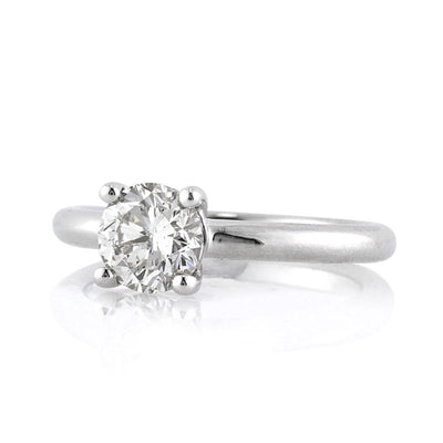 Simplicity at its best! A single round brilliant cut diamond is the center of attention on this solitaire diamond engagement ring. The 1.21ct round brilliant cut diamond is EGL certified at G-H, SI1. The over one carat diamond is extremely brilliant and nearly colorless. It is set in a 14k white gold, four prong setting. This simple and timeless round brilliant cut diamond engagement ring is a classic and will never go out of style.