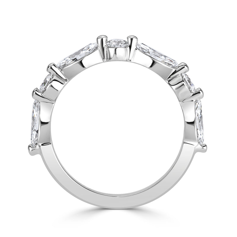 1.22ct Marquise and Round Brilliant Cut Diamond Wedding Band in 18k White Gold