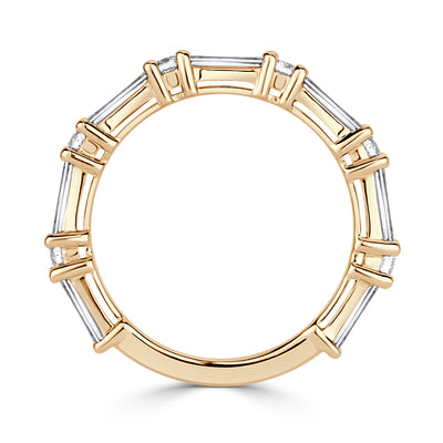 1.25ct Baguette and Round Brilliant Cut Diamond Wedding Band in 18k Champagne Yellow Gold