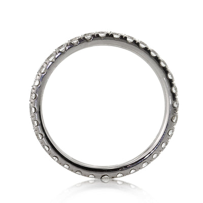 This mesmerizing round brilliant cut diamond eternity band is set with perfectly matched round diamonds that are exceptionally white and perfectly clear. The diamonds are all set in a smooth and beautiful platinum micropave style setting that showcases the diamonds beautifully with minimal metal visibal. It is gorgeous! It looks amazing by itself and is a great compliment to any engagement ring as well.