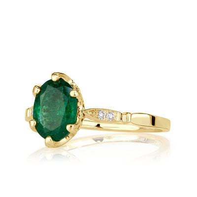 1.28ct Oval Cut Green Emerald Engagement Ring