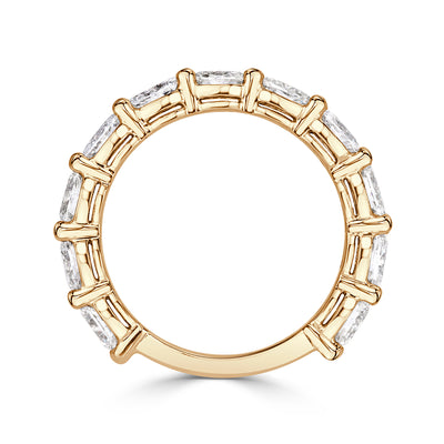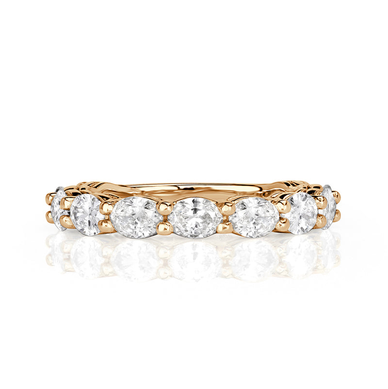 Seal your vows with this lovely 18k champagne yellow gold diamond wedding band. Mark Broumand never compromises when it comes to diamond selection and each of the diamonds in this band consists of premium qualities. The oval cut diamonds display shimmering brilliance due to their premium colors of E-F and VS1-VS2 clarities.