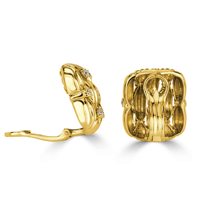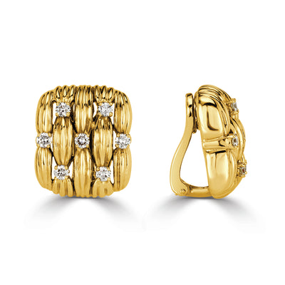 These gorgeous diamond clip-on earrings are authentic Tiffany & Co estate jewelry pieces and truly one-of-a-kind! They feature 1.40ct round brilliant cut diamonds that are certified at E-F colors, VS1-VS2 clarities. The diamonds sparkle brilliantly against the luxurious 18k yellow gold intricate design. These earrings are glamorous and vintage beauties.