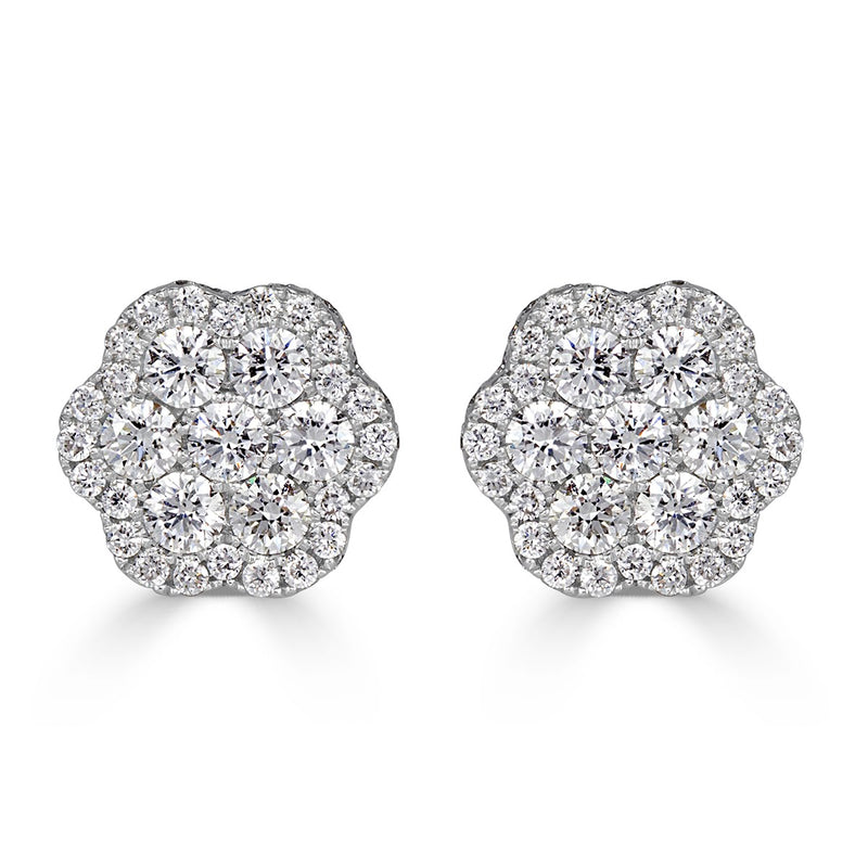 1.44ct Round Brilliant Cut Diamond Floral Stud Earrings