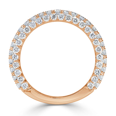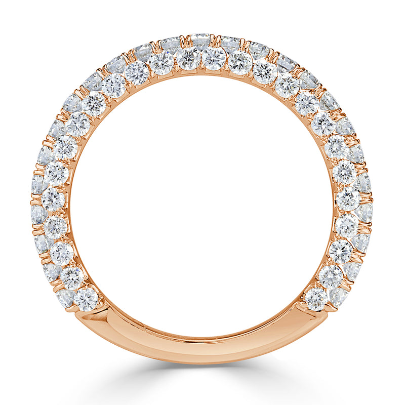 1.45ct Round Brilliant Cut 3-Row Diamond Wedding Band in 18k Rose Gold