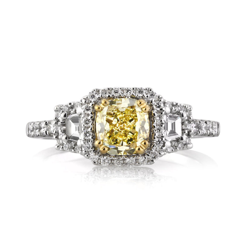1.46ct Fancy Yellow Cushion Cut Diamond Engagement Ring